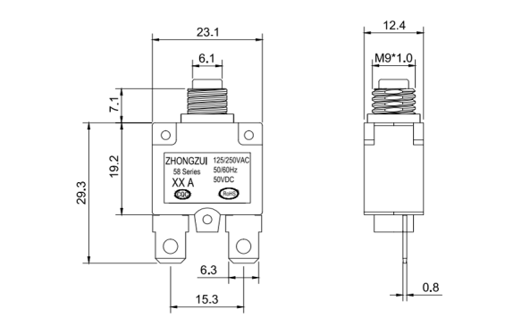 58 Series is a compact,single pole,push to reset over current supplementary protectors.